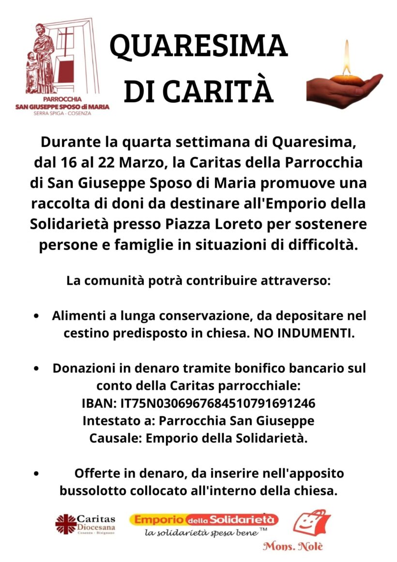 Carissimi parrocchiani vi inoltro il programma della festa patronale di San Giuseppe, che vivremo come comunità parrocchiale dal 12 al 19 marzo 2026. Sarà per tutti noi un tempo bello di preghiera, di comunione e di testimonianza, nel quale affidarci […]