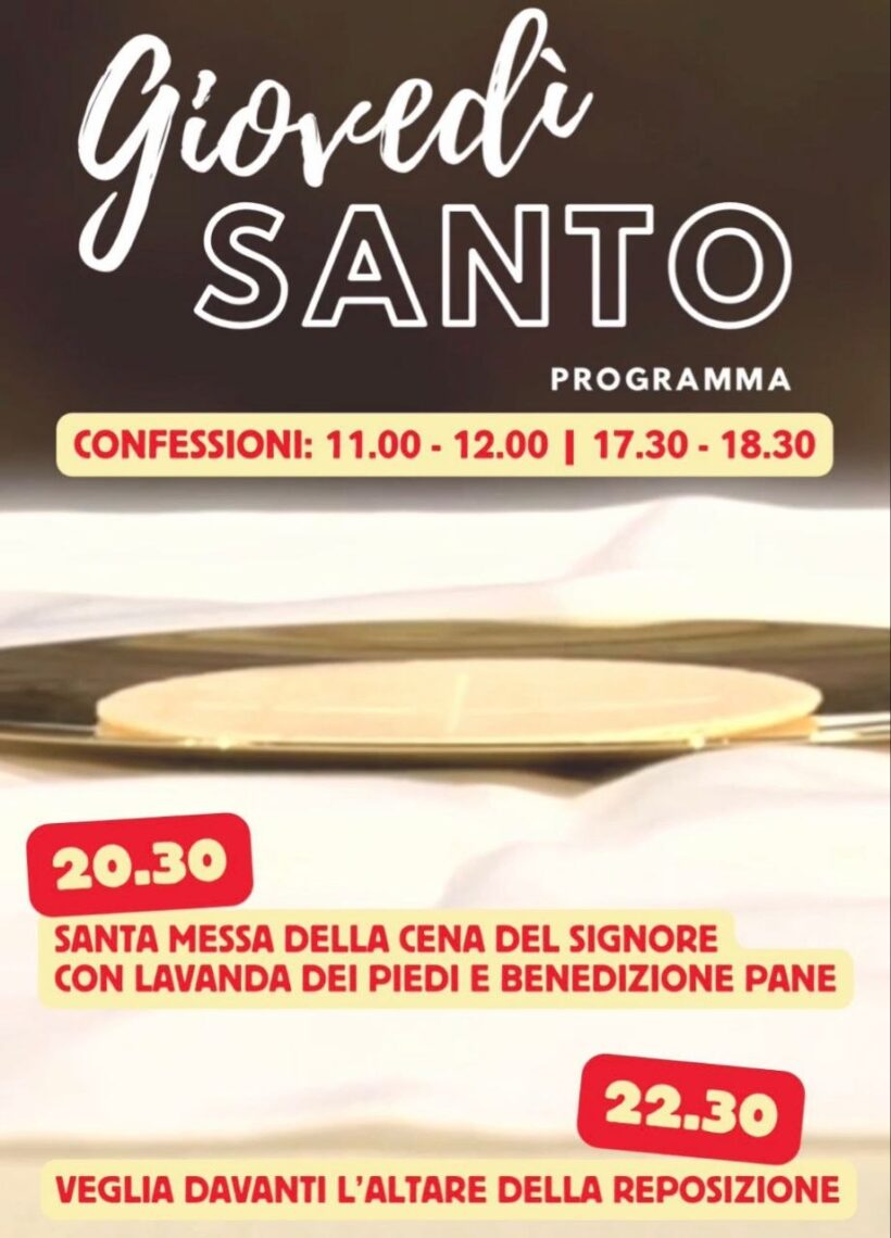 Carissimi, entriamo nei giorni più santi dell’anno, nei quali contempliamo l’amore di Cristo che si dona fino alla fine. Viviamo insieme il Triduo Pasquale con fede, raccoglimento e gratitudine. Oggi Giovedì Santo, giorno in cui ricordiamo l’istituzione dell’Eucaristia e del […]