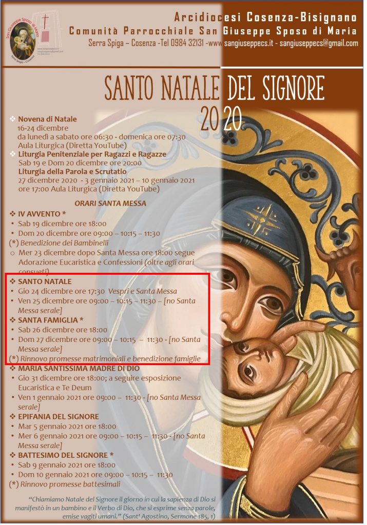 Santo Natale 2020 – Orari Santa Messa –